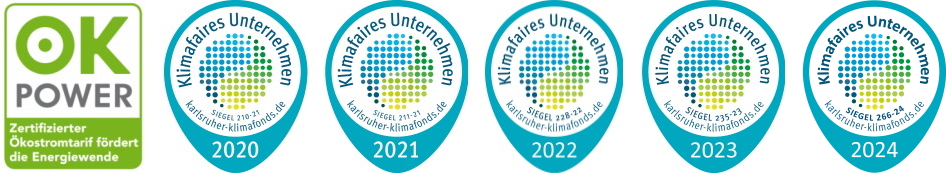 - durch unsere vollständige Klimaneutralität seit 2020, derzeit noch mittels Kompensation